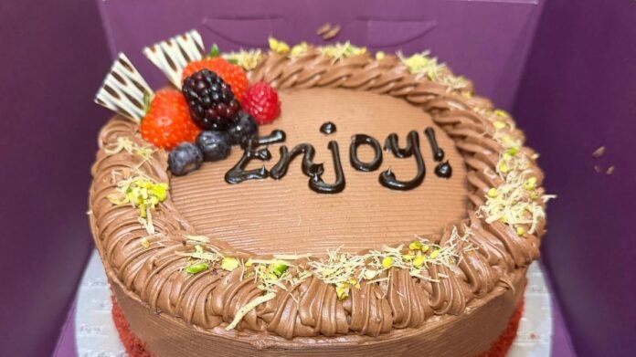 Many have praised Cake Box’s egg-free cakes for their light and fluffy texture, with some even describing them as the best they’ve ever had. One popular choice is the Red Velvet Dubai Chocolate Cake, featuring a red velvet sponge layered with pistachio cream and a unique Dubai mix, topped with Nutella piping, suter pheni, pistachios, and fresh berries.